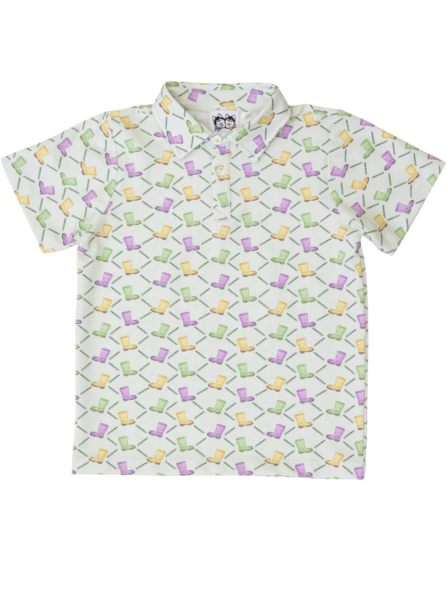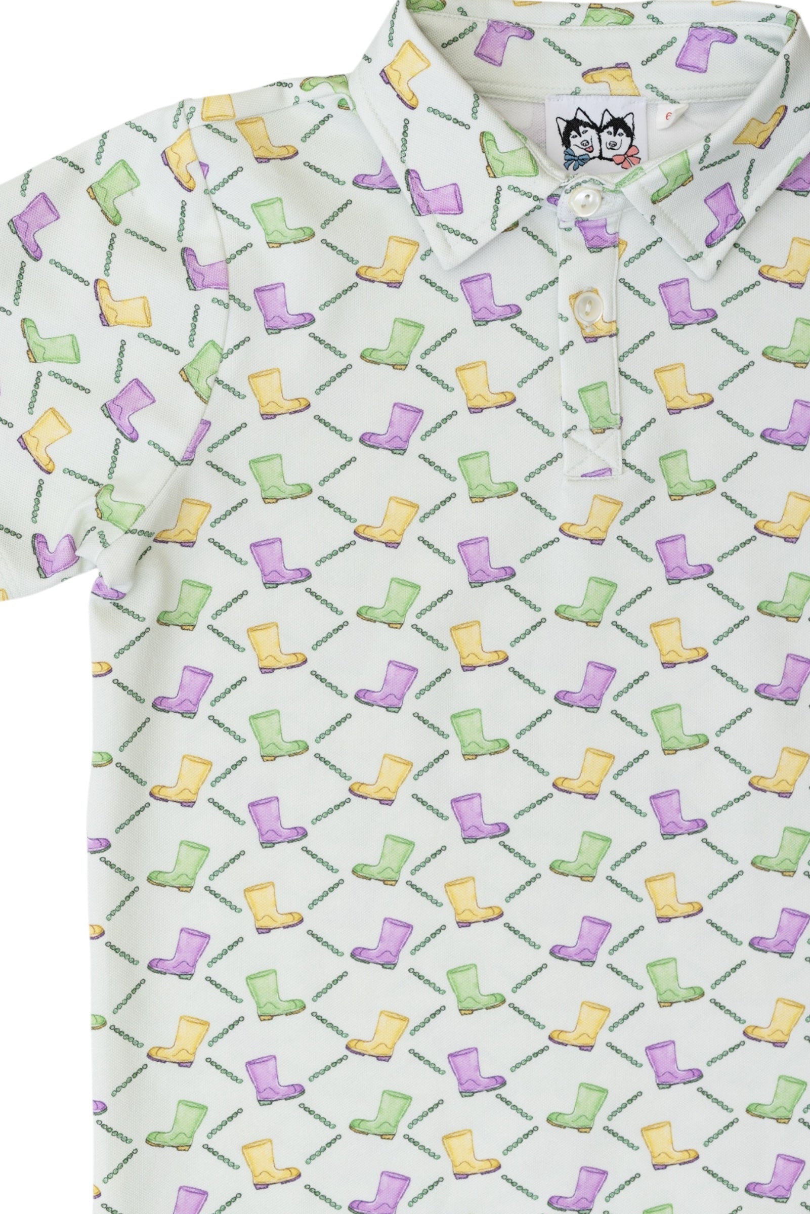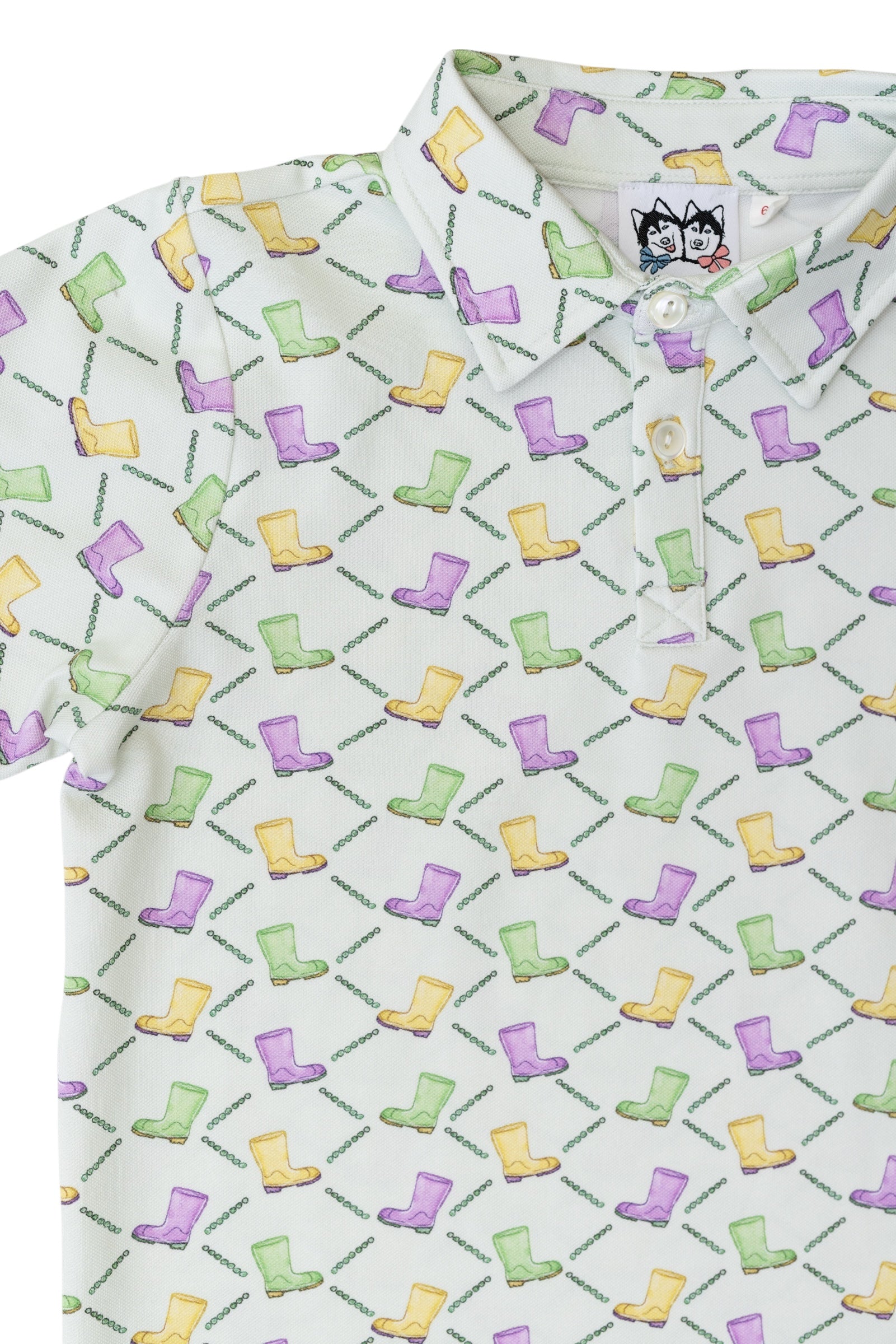 Step up your parade game with the Mardi Boots Golf Polo! Featuring a lively custom pattern inspired by Mardi Gras, this playful polo adds fun flair whether you’re on the green or in the streets. Lightweight and breathable, it keeps you cool during parades or golf rounds, making it the perfect blend of festive style and comfort. Let every step feel like a celebration! If between sizes, size up!
