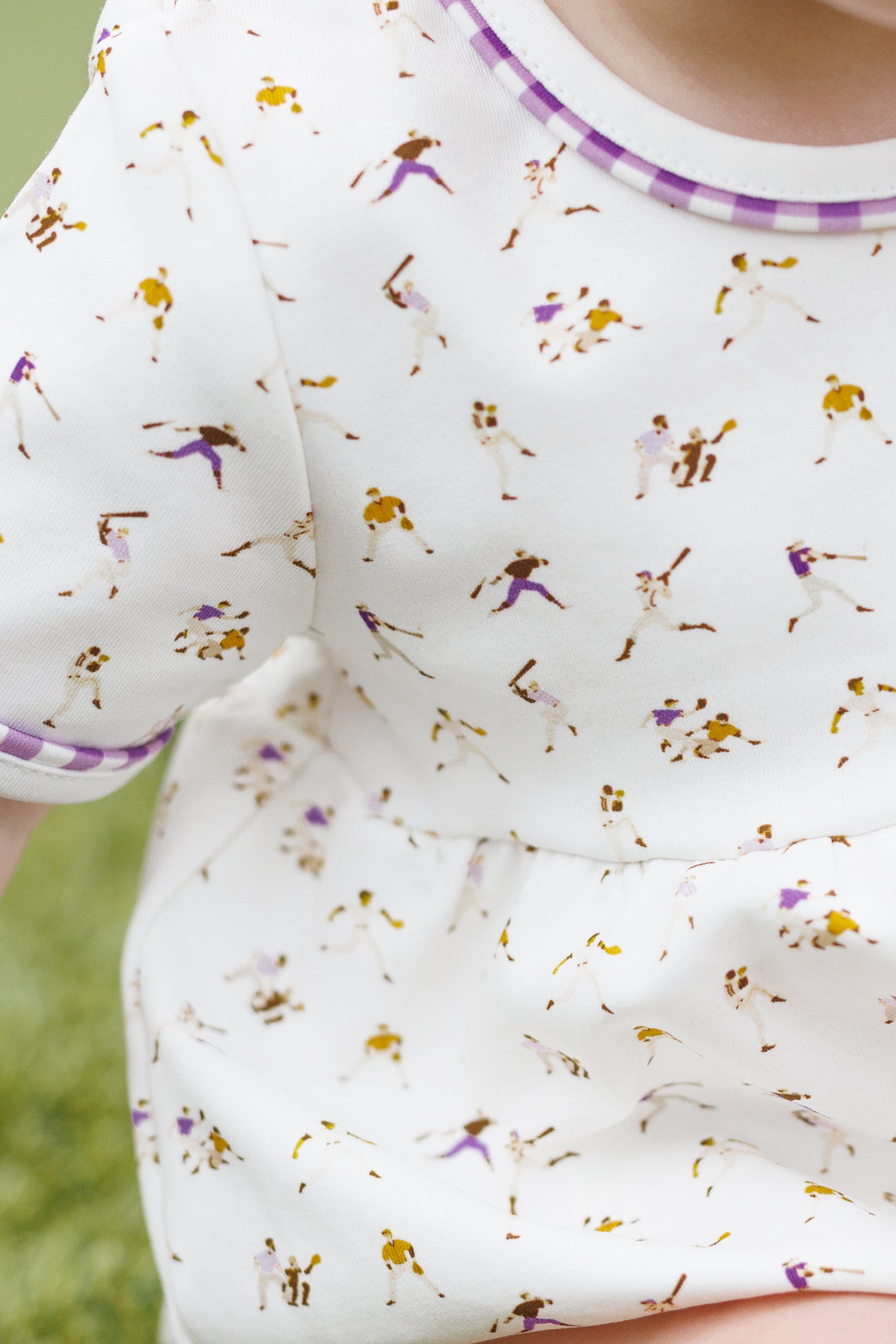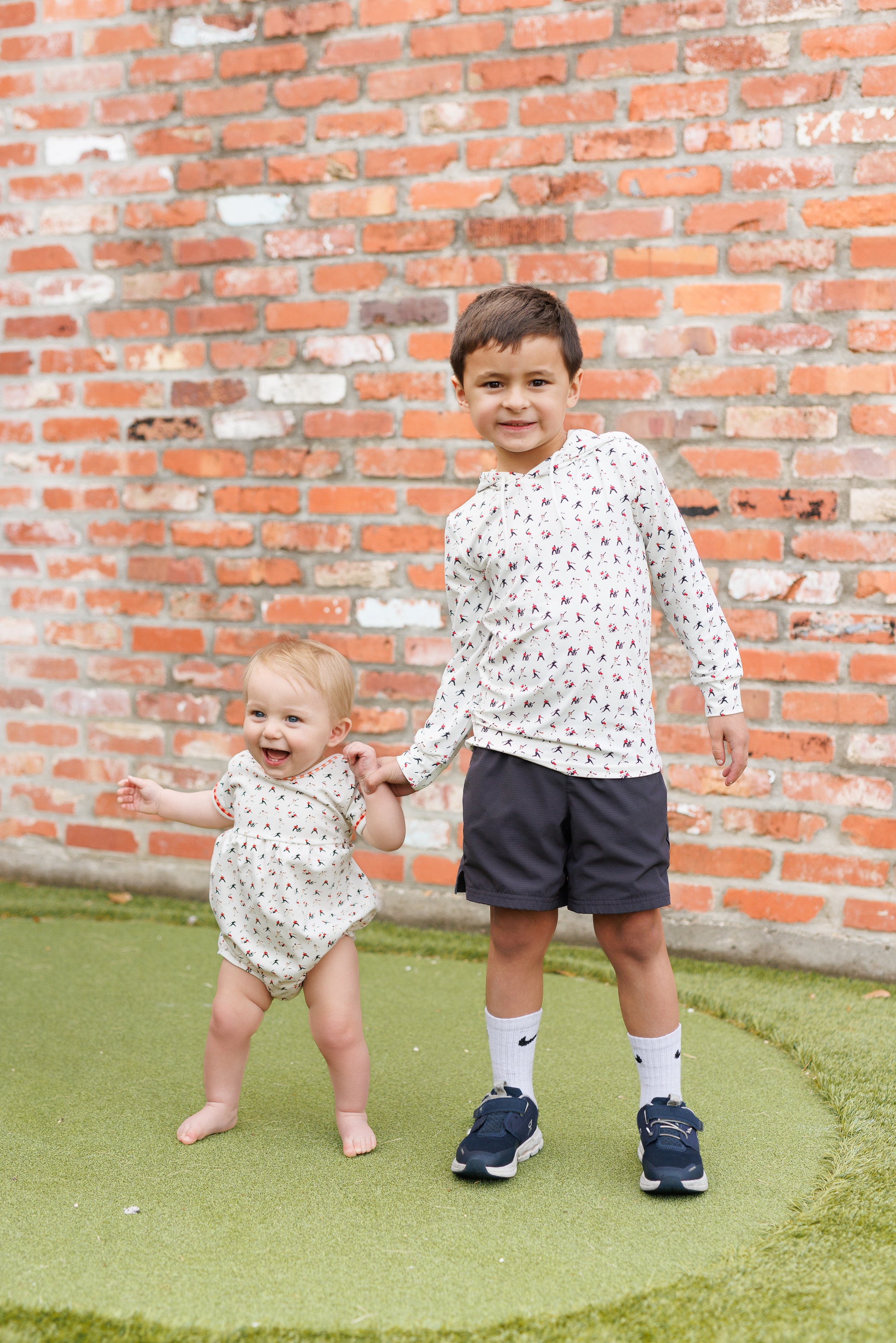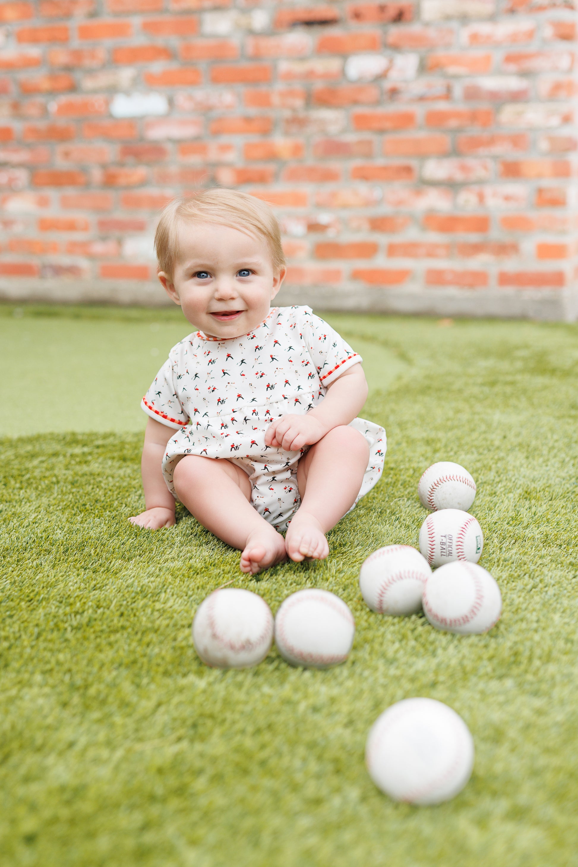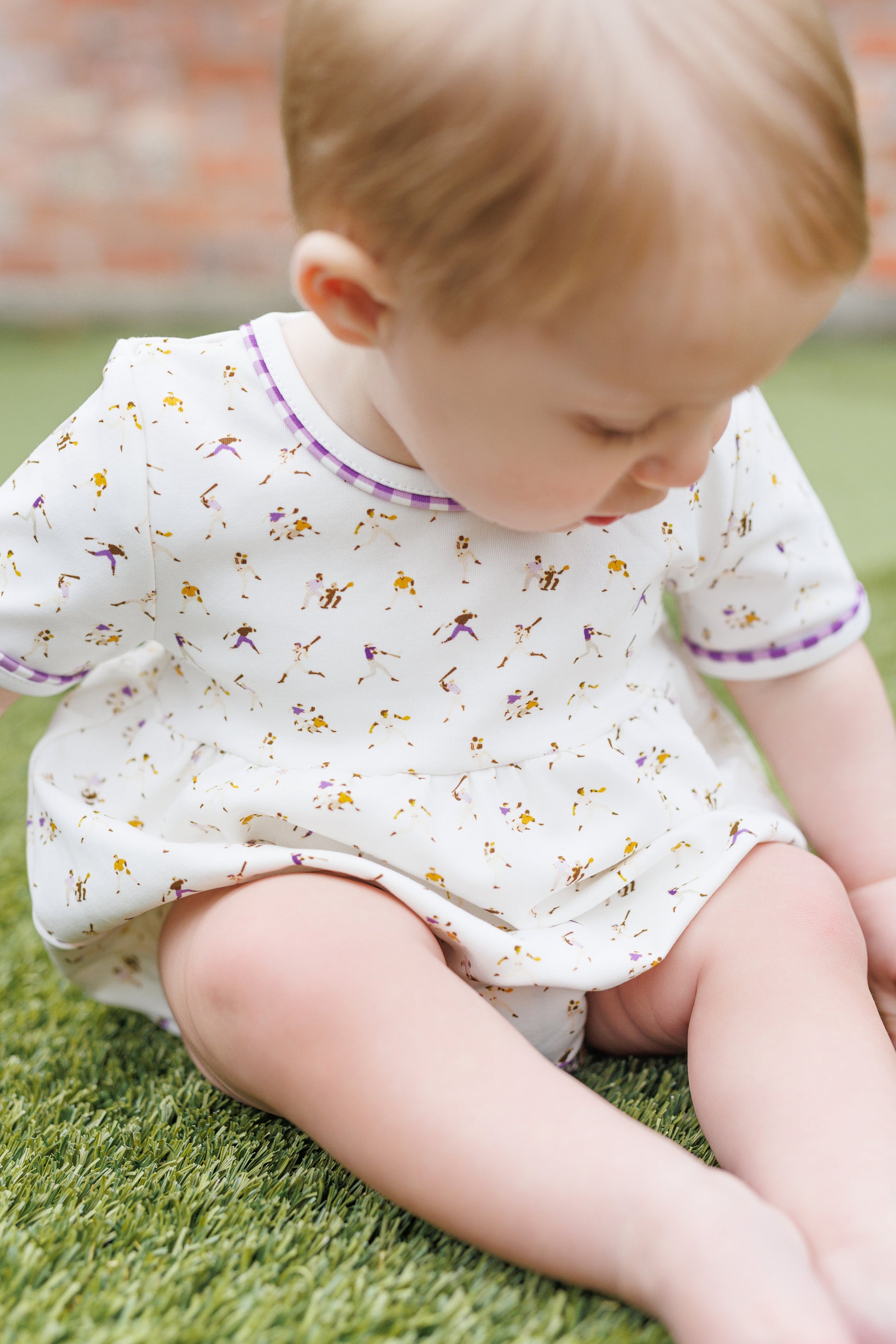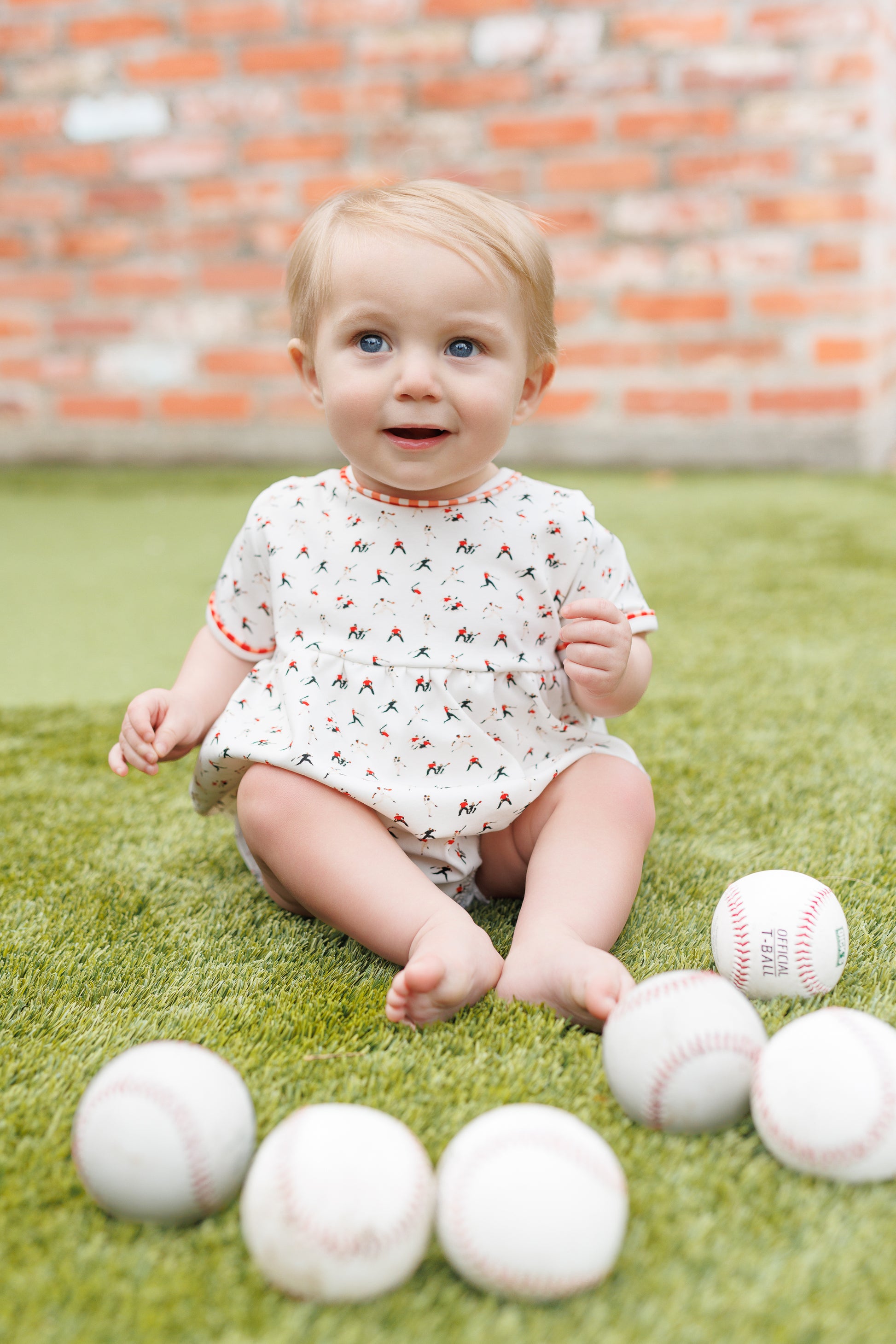 Soft cotton, sweet gingham trim, and easy snap bottoms—this baseball bubble is a home run for first pitches, tailgates, and cuddles in the stands.