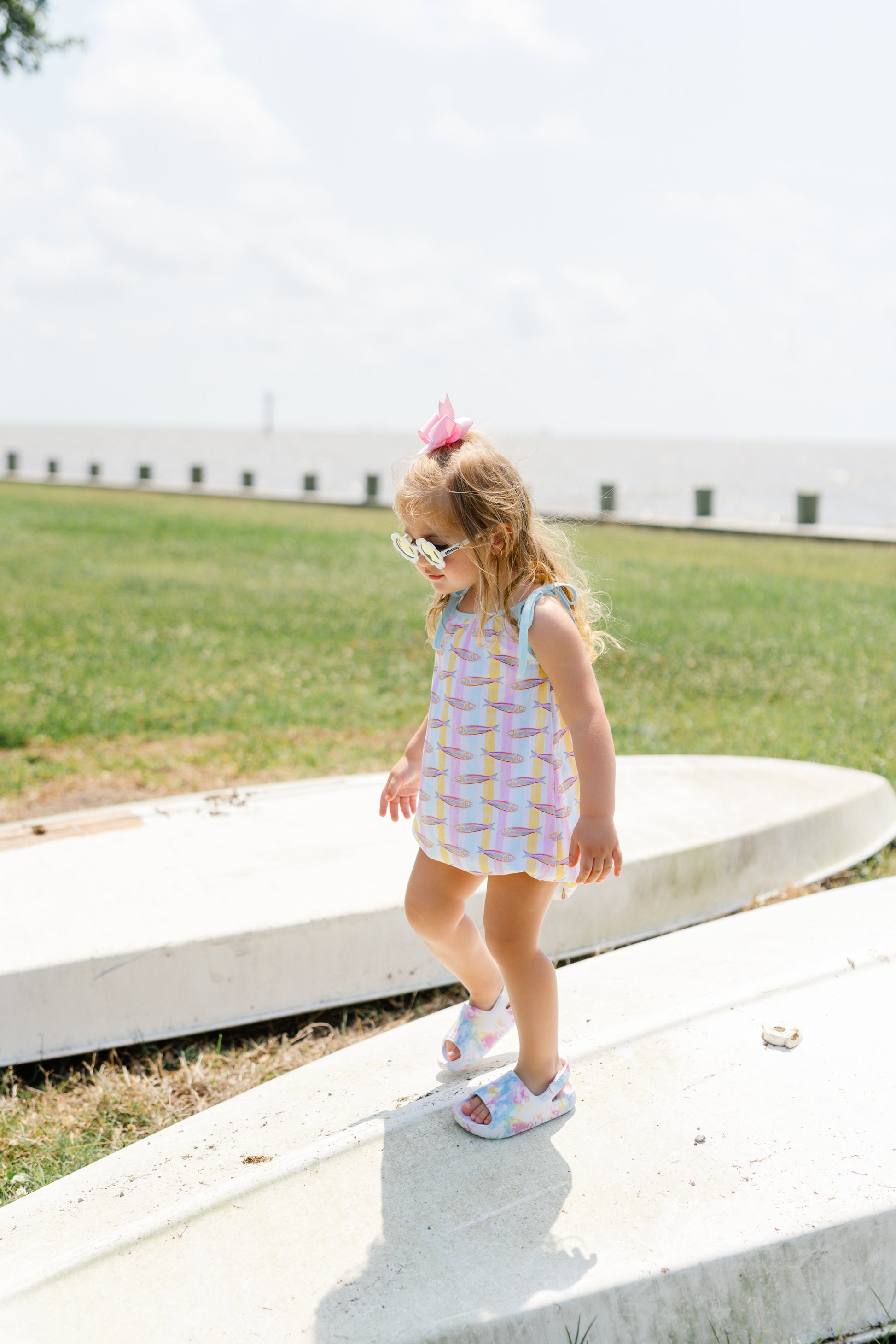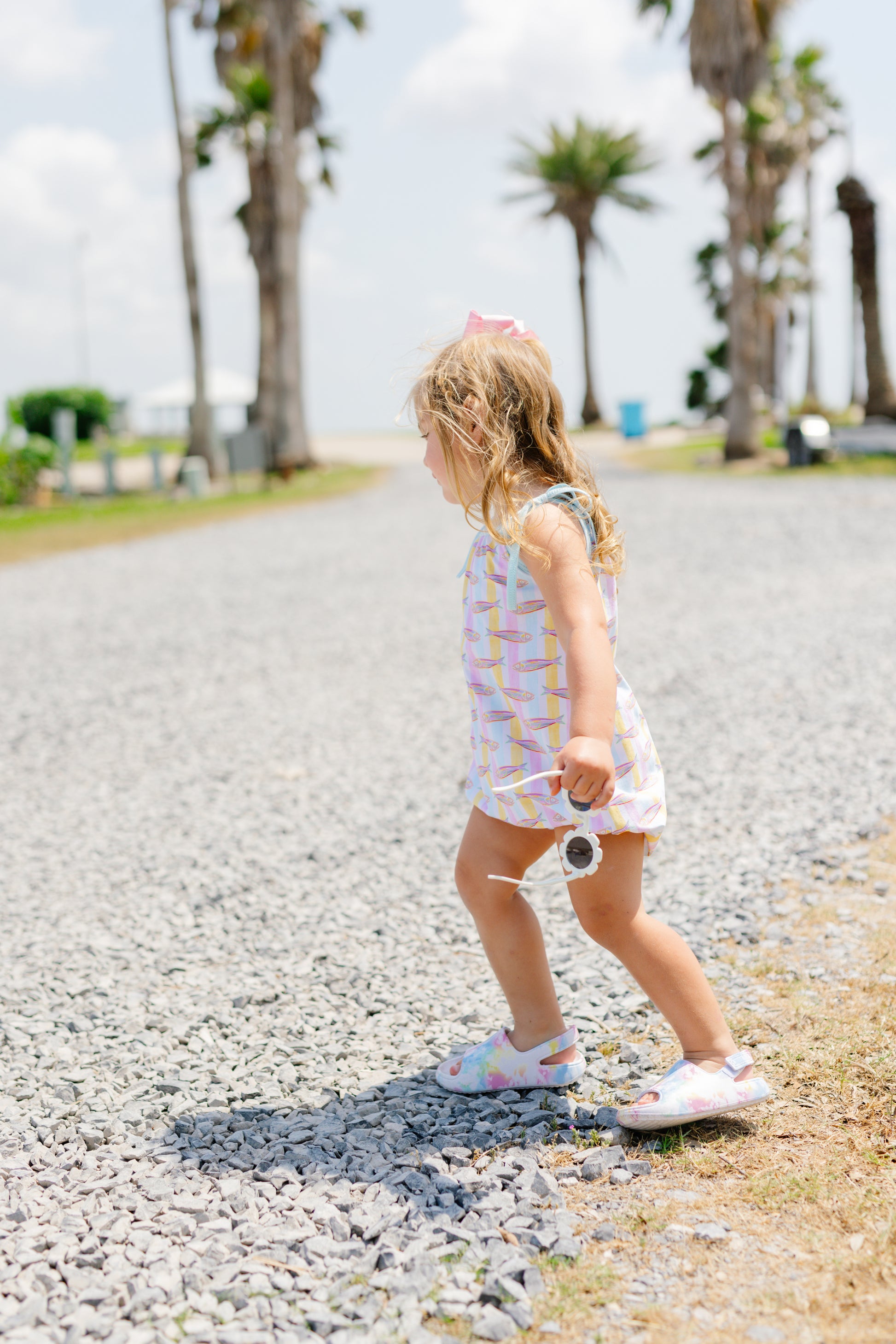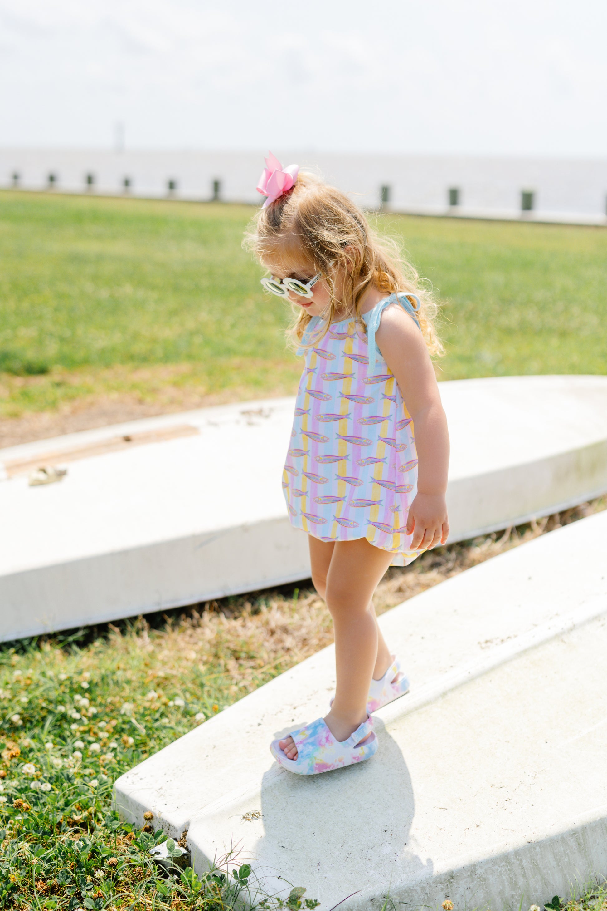 Upgrade your summer wardrobe with the Finn & Rae X LALA VIED custom print collab. This super cute bubble features a tie shoulder detail and can be matched with other styles for siblings.