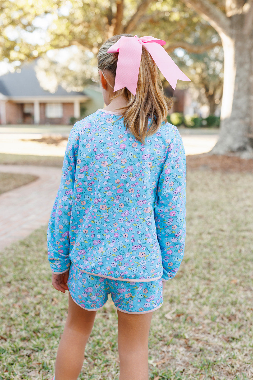 The long-sleeve top is made from a soft, breathable fabric that moves with your child, whether they’re racing down the sidewalk or twirling with friends. Paired with matching shorts featuring an easy elastic waistband, this set stays comfy and secure through every adventure. The bright, playful prints and coordinating solid make it effortlessly cool while still looking perfectly put together.