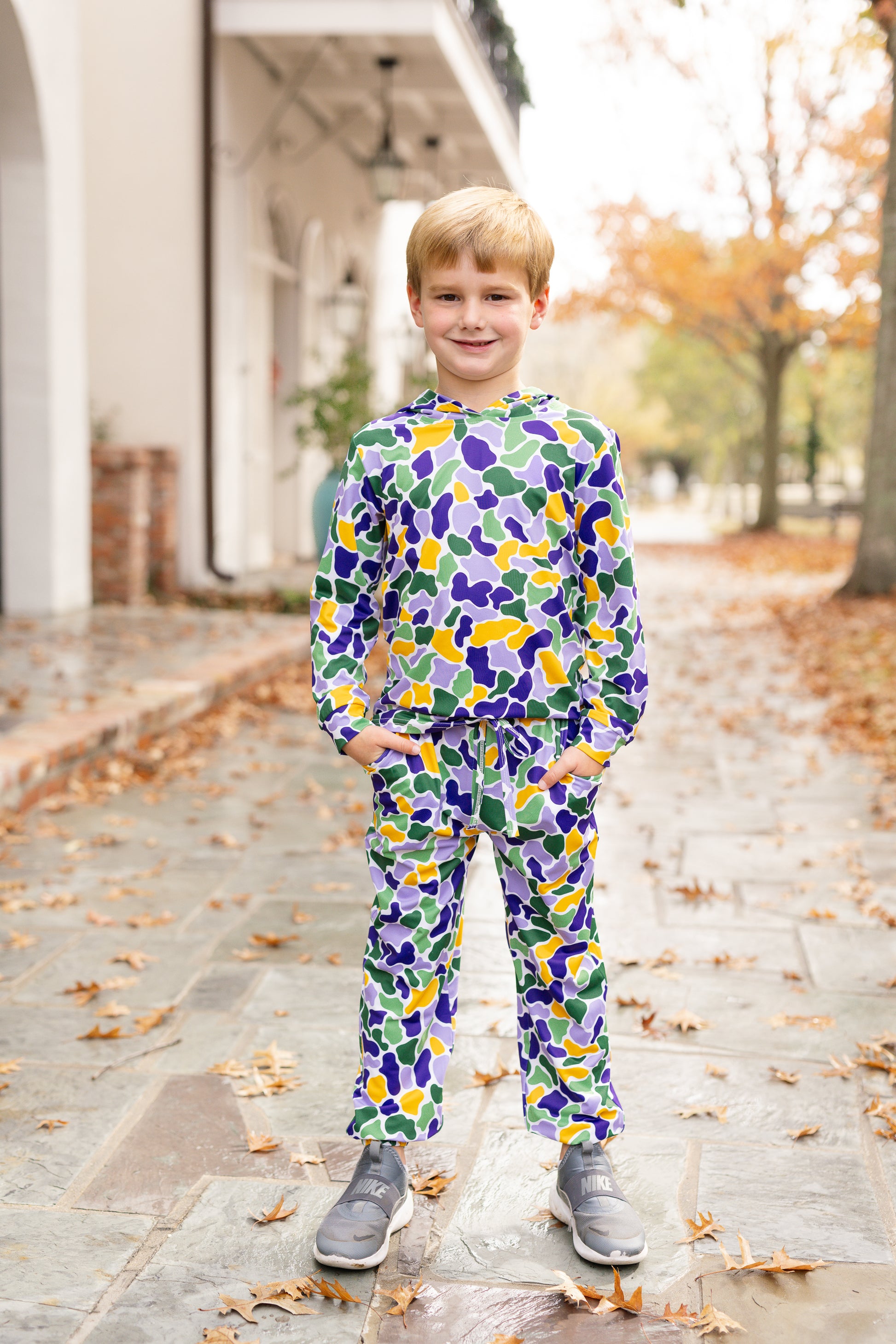Celebrate in style with our Throw me Something Camo Long Sleeve Hoodie—where cutting-edge camo meets pure mardi gras magic. This custom-printed hoodie is your ticket to looking absolutely fire during parade season, blending trendy aesthetics with festive flair that demands attention.