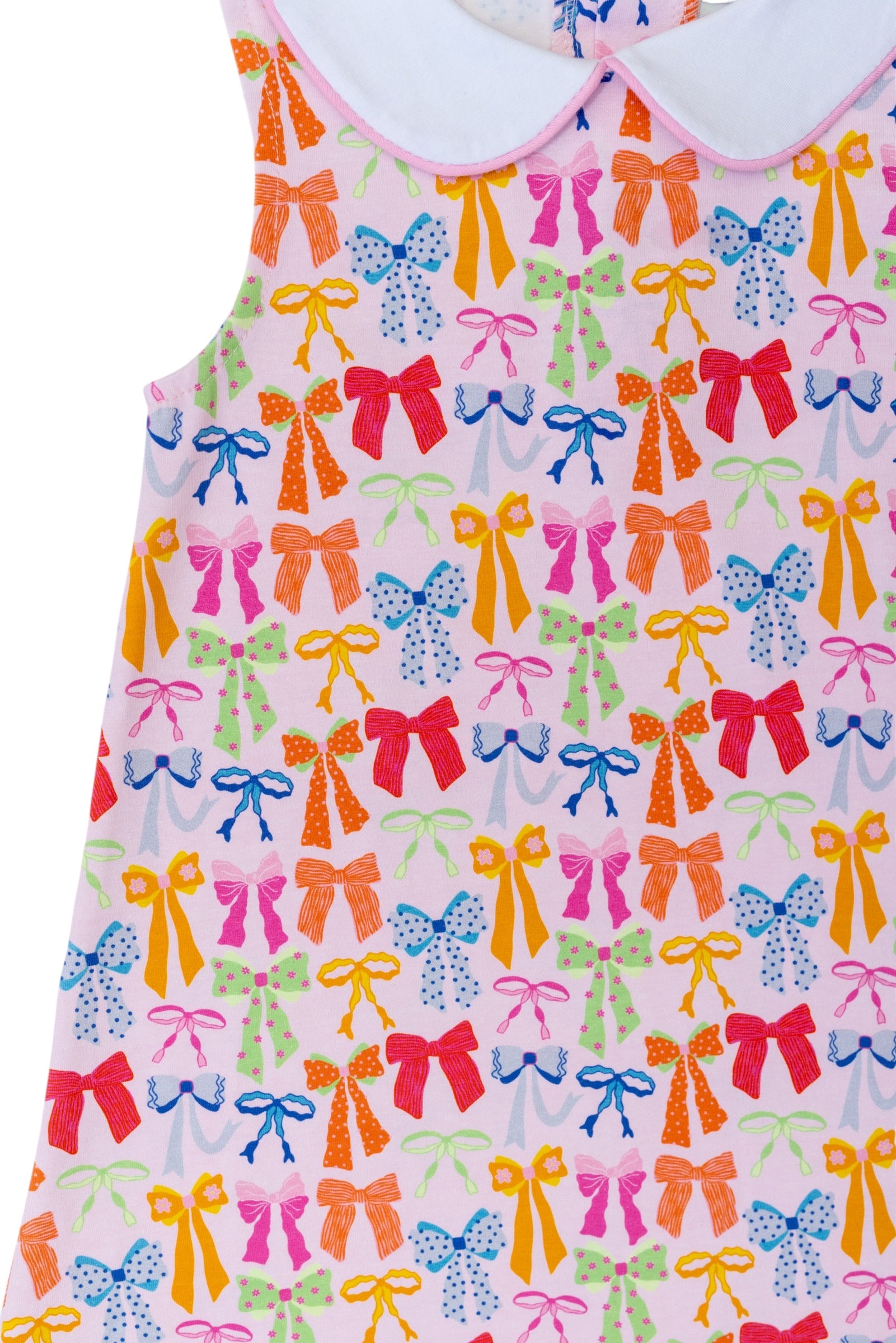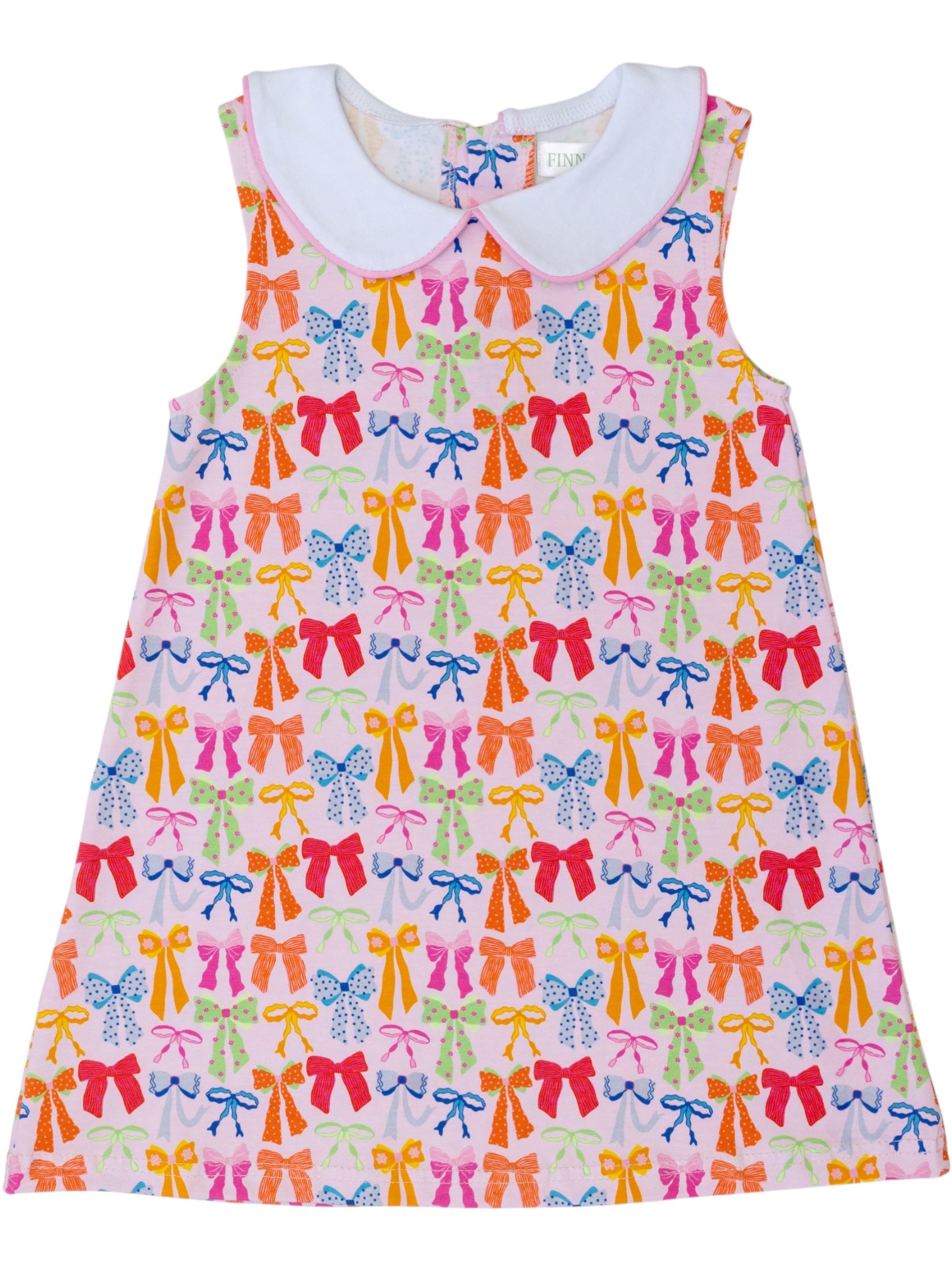 This Tied and True Dress is a playful, everyday dress with a unique Finn & Rae x LALA VIED custom print. The collared design adds a touch of fun and the potential for sibling matching. Perfect for those who value comfort and style.